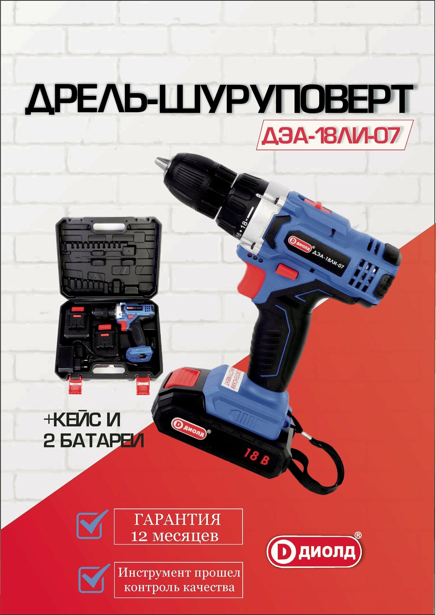 Дрель/шуруповерт Аккумуляторная дрель-шуруповерт диолд ДЭА-18ЛИ-07
