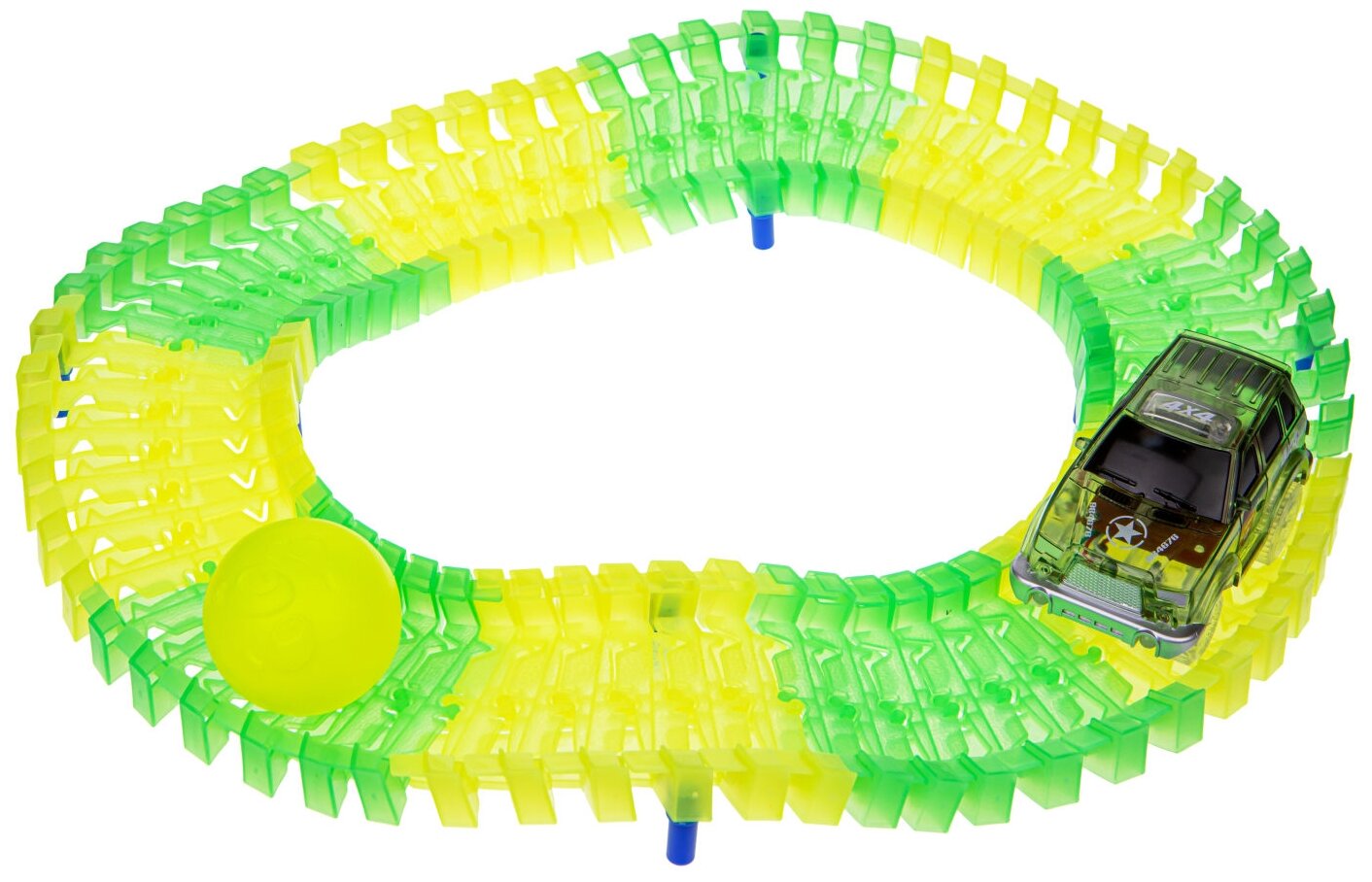 Лучшие цены. 1 Toy Гибкий трек Комбат (70 деталей) позволит ребенку разыграть невероятно увлекательный и захватывающий сюжет. Трассу можно собирать различными способами, и количество вариантов сборки ограничивается лишь фантазией ребенка. Элементы дороги покрыты фосфоресцентной краской, светящейся в темноте, а фары автомобилей также светятся, что делает игру еще более увлекательной. Детали набора совместимы с другими наборами серии, что позволит разнообразить игровой процесс. Магазины в вашем городе.
