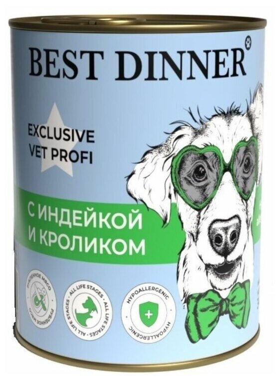 Best Dinner Exclusive Hypoallergenic консервы для собак при проблемах пищеварения c индейкой и кроликом - 340 г х 6 шт