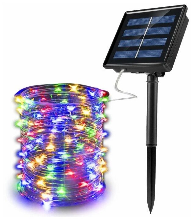 Светодиодная гирлянда нить Разноцветный на солнечной батареи 100 ламп 10 метров 8 режимов