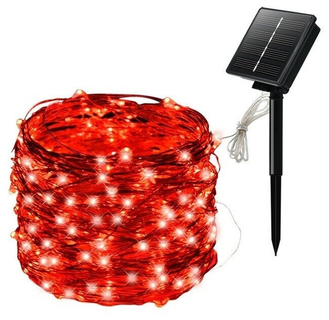 Солнечные панели Светодиодная гирлянда нить Красный на солнечной батареи 100 ламп 10 метров 8 режимов
