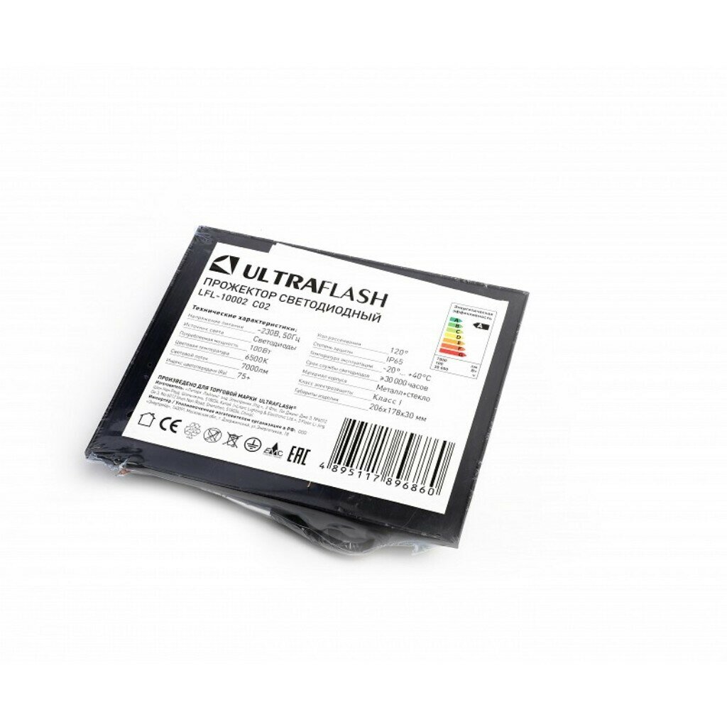 Прожекторы и уличное освещение Ultraflash прожектор светодиодн. LFL-10002 C02 100W(5500lm) 6500K 6K черный 206x178x30 (в пленке б/уп) IP65 (арт. 866374)