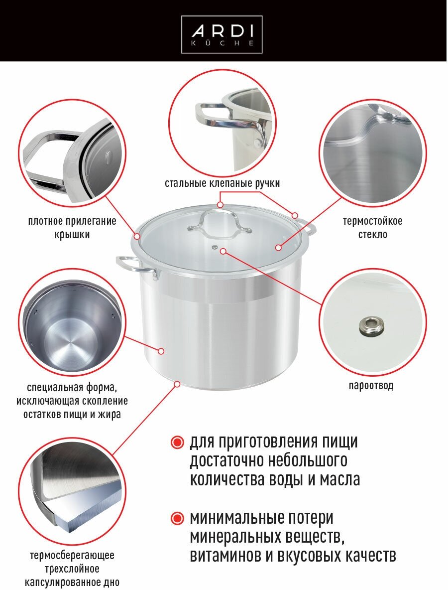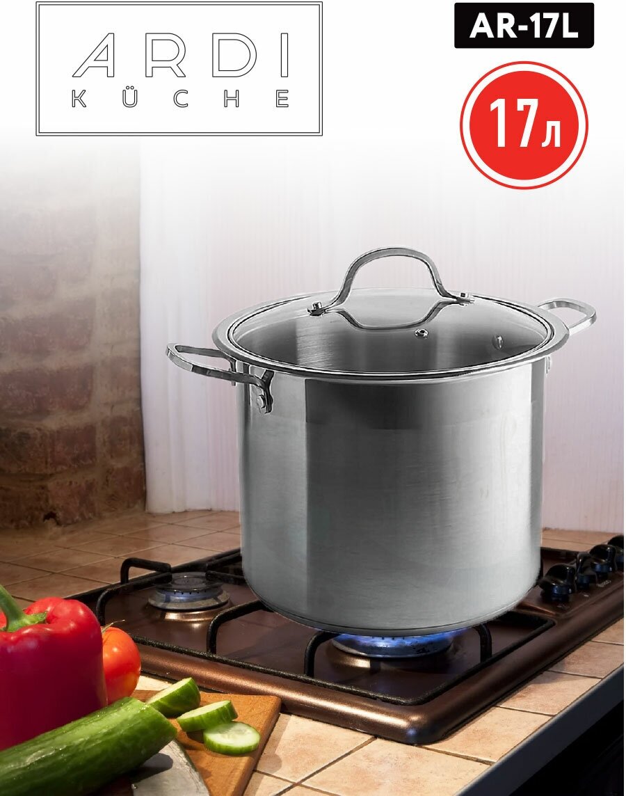 Кастрюли Кастрюля ARDI KUCHE AR-17L, 17 л, из нержавеющей стали со стеклянной крышкой, 30×24 см