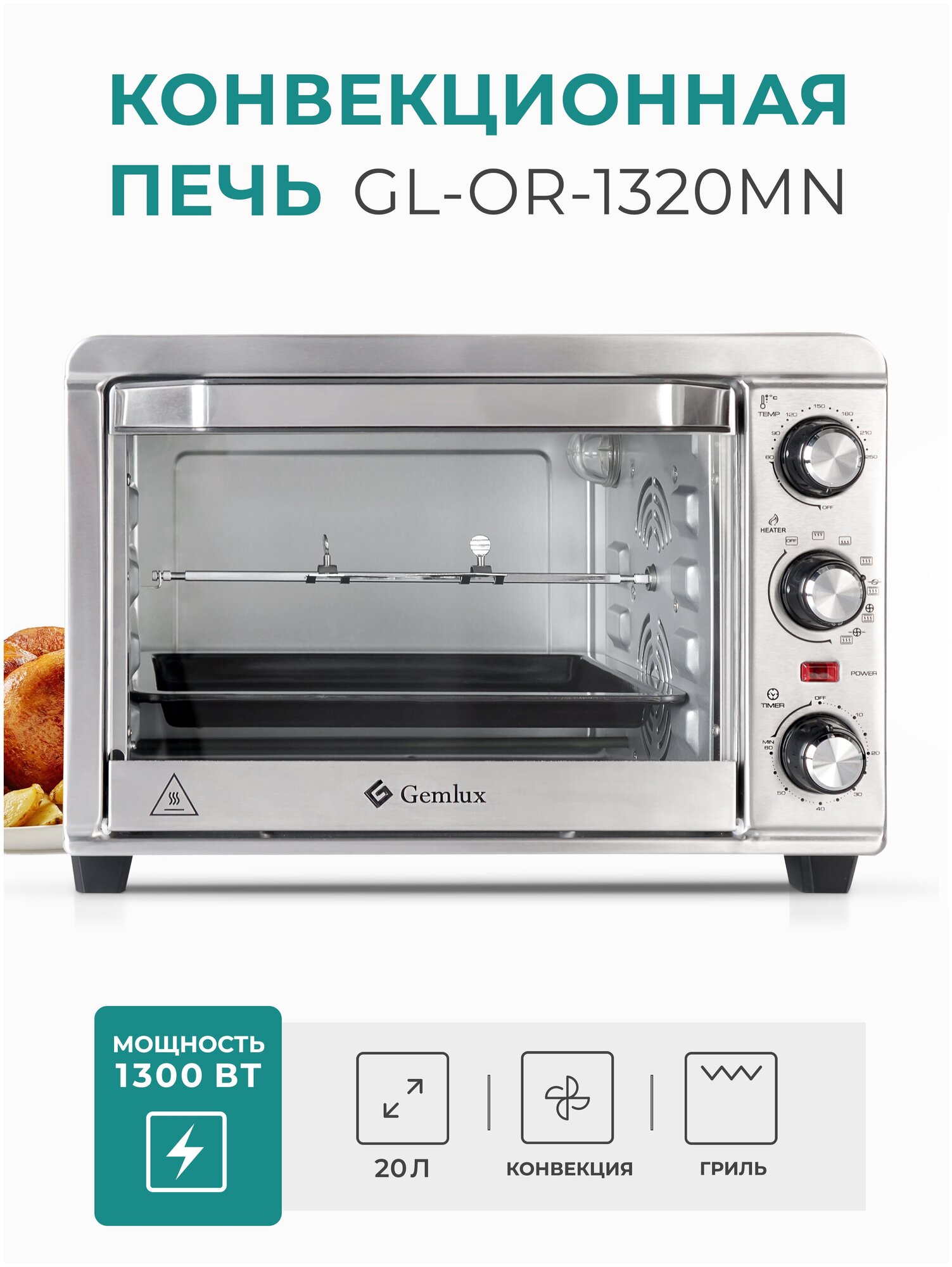 Мини-печь с конвекцией и грилем GEMLUX GL-OR-1320MN, 20 л, 1300 Вт, минипечь, электропечь для выпечки, печка, духовка электрическая настольная, электродуховка, духовой шкаф, бытовая техника для кухни