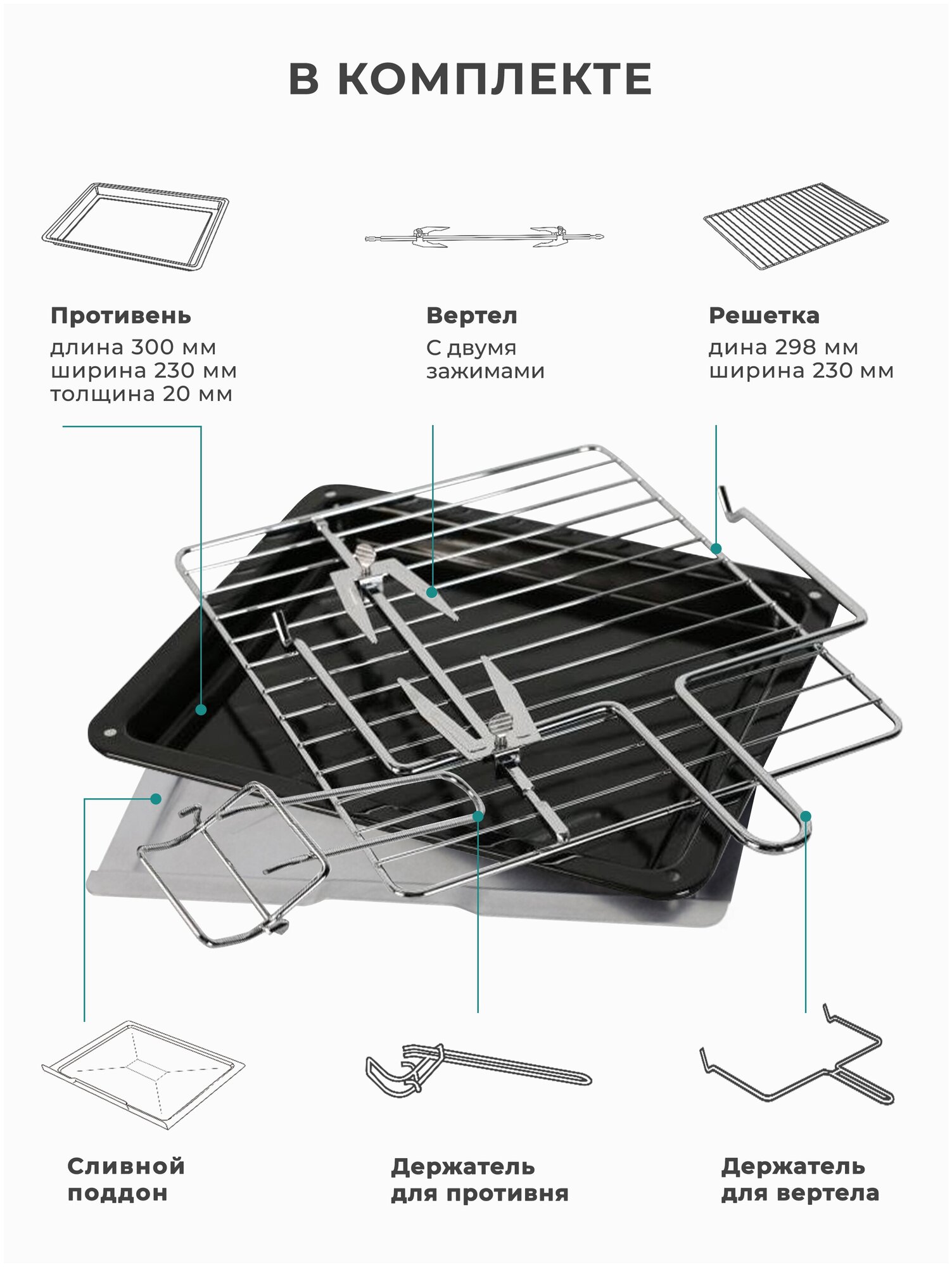 | Функции и возможности | гриль, конвекция, вертел, таймер |