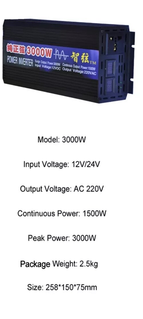 Инверторы Автомобильный преобразователь напряжения 3000 Вт 12В-220В инвертор автомобильный 3000w 12v-220v Power inverter. Чистая, немодифицированная синусоида