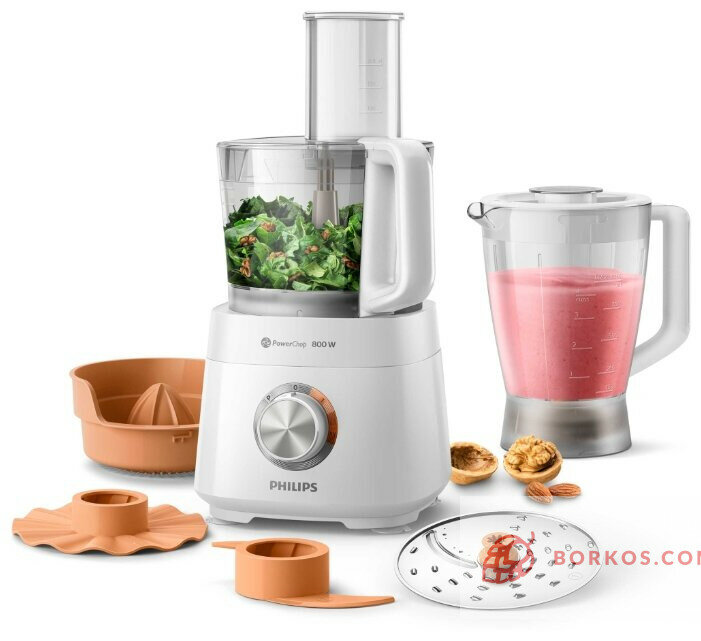 Кухонный комбайн Philips/ Кухонный комбайн 6 в 1 Philips Viva Collection, 800 Вт, Насадки: 5, Скорости: 2+турбо, Цвет:
