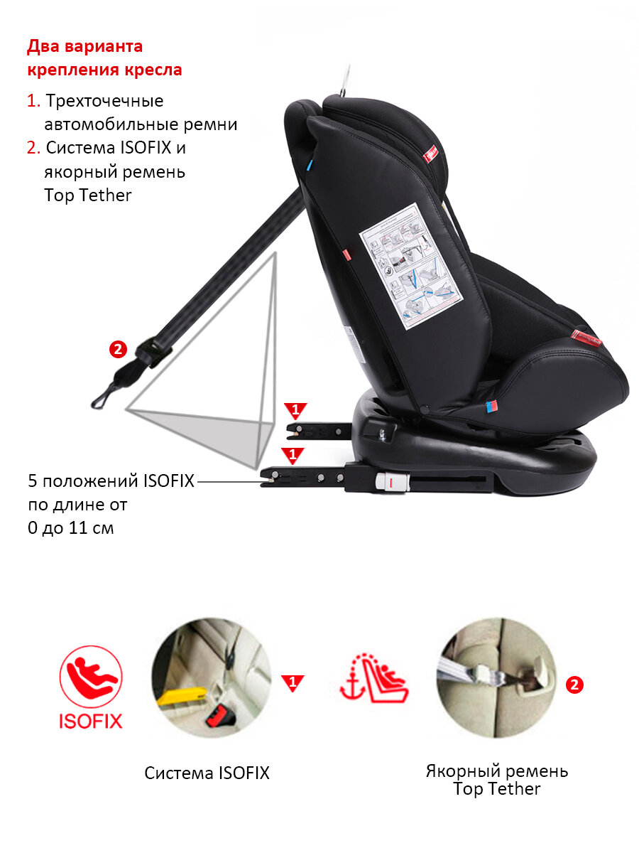 | Крепление | ремнем безопасности / якорный ремень (Top Tether) / ISOFIX |