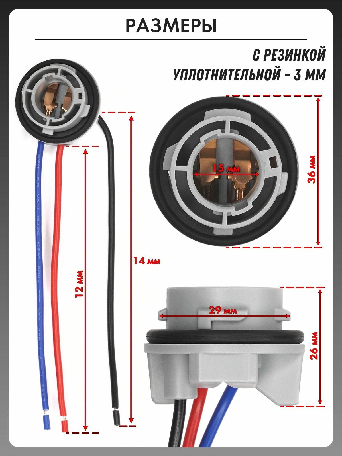Автолампы Патрон для лампы 1157 P21/5W цоколь BAY15d 1шт двухконтактный с проводами