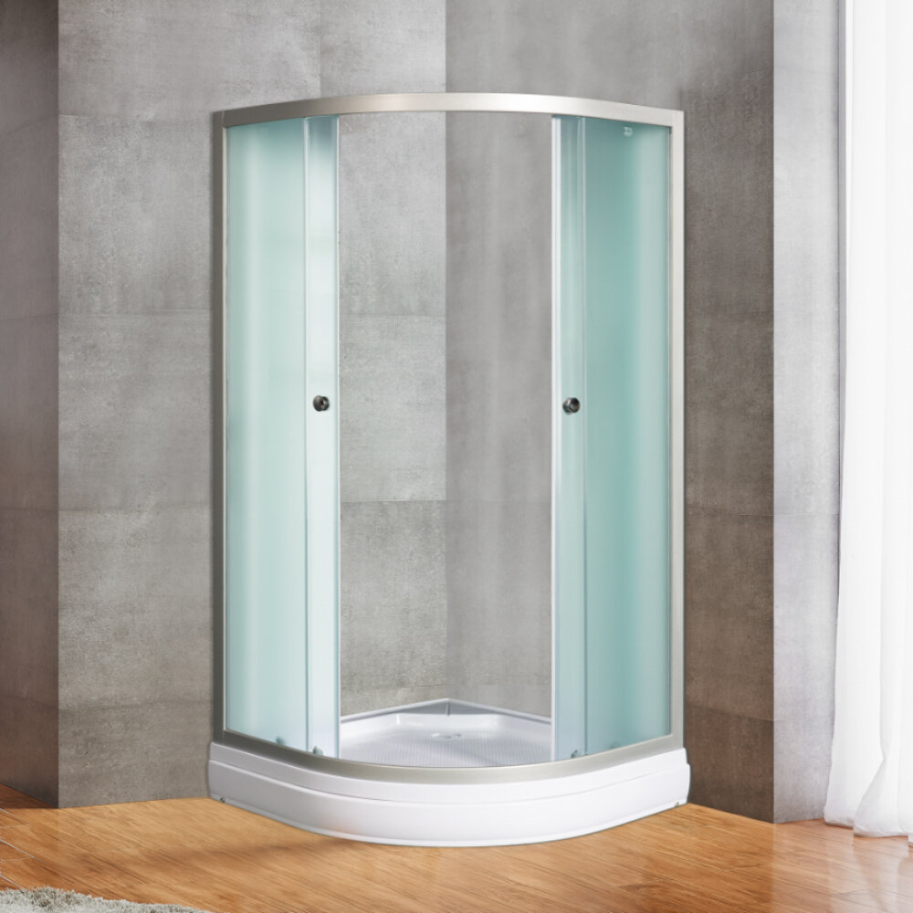 Лучшие цены. Типы и размеры: без поддона 80*80*176 с поддоном 80*80*191 Матовое стекло, профиль матовый хром Душевое ограждение для ванной комнаты полукруглое с боковым профилем и роликами. Магазины в вашем городе.