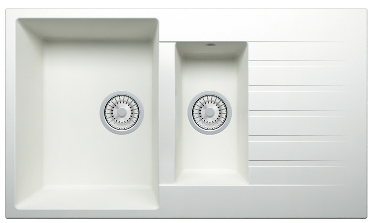 Мойка для кухни TOLERO Classic R-118 каменная врезная квадратная, двухсекционная с крылом. Кварц (№923 Белый)