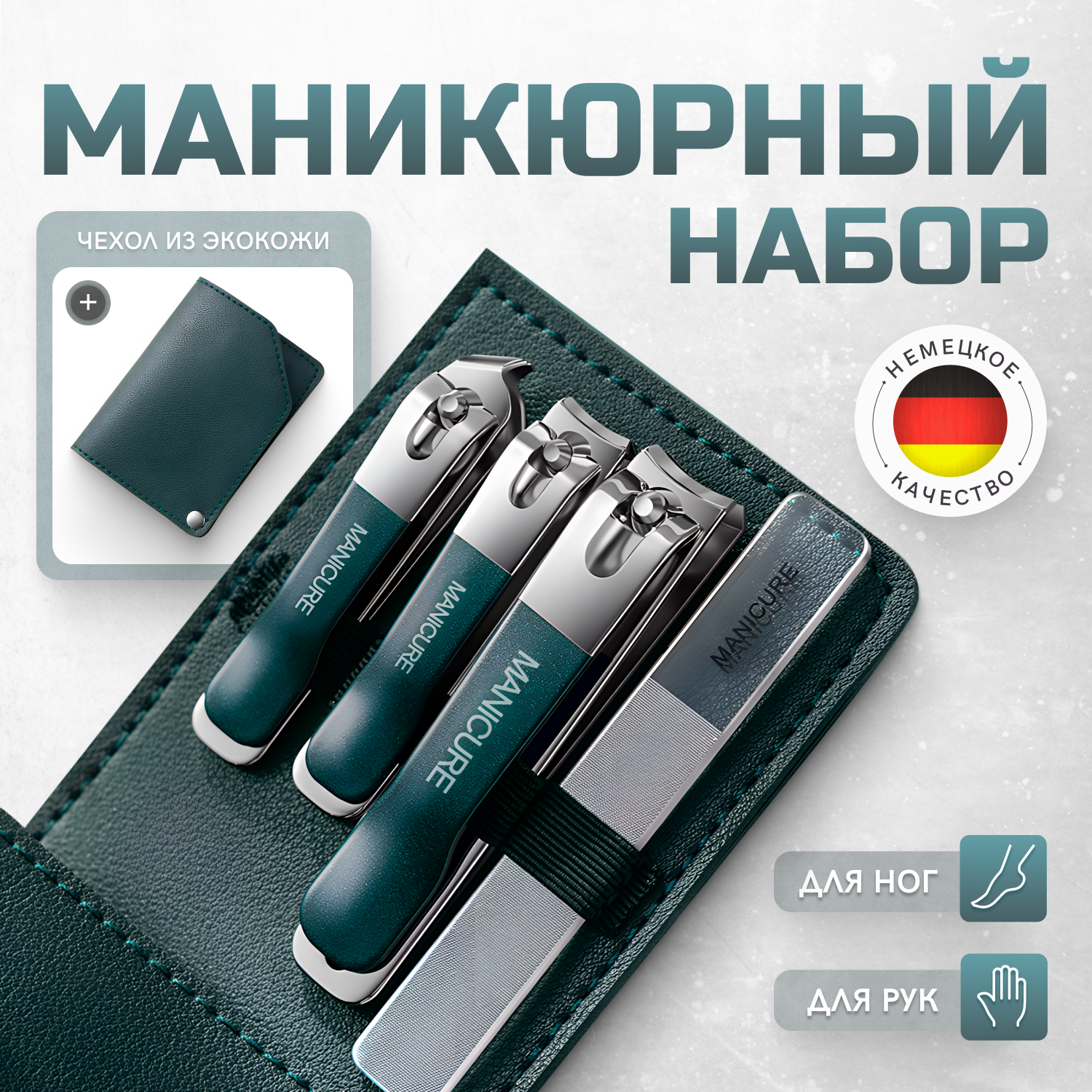 Маникюрные наборы Маникюрный набор подарочный 3 в 1 кусачки для ногтей и пилка, зеленый