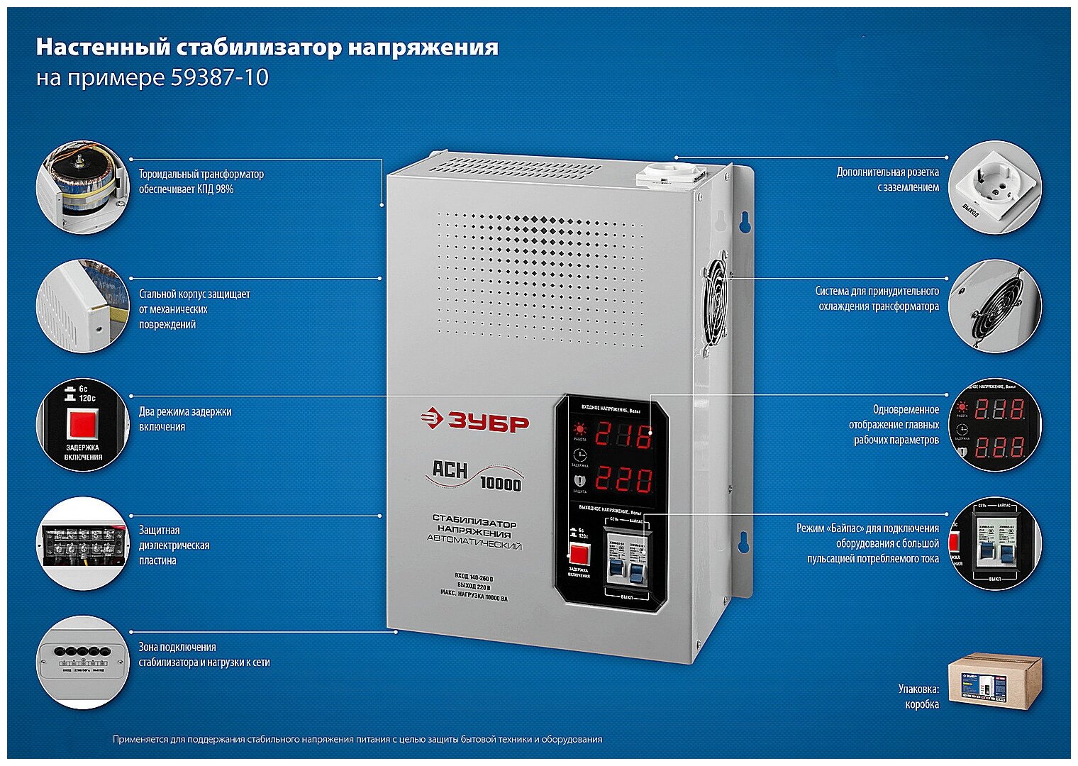 ЗУБР 220 В, профессиональный стабилизатор напряжения АСН 10000 59387-10 Профессионал