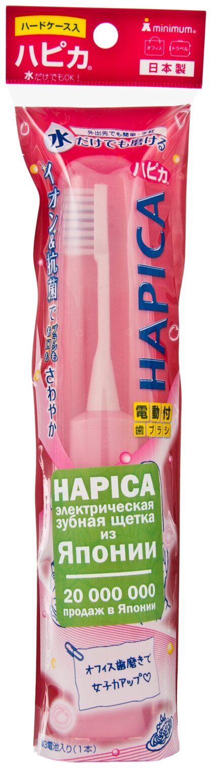 Электрическая зуюная щетка Hapica Minus-iON DBM-5P, звуковая, ионная, в футляре, в дорогу и для путешествий, Япония. Розовый цвет