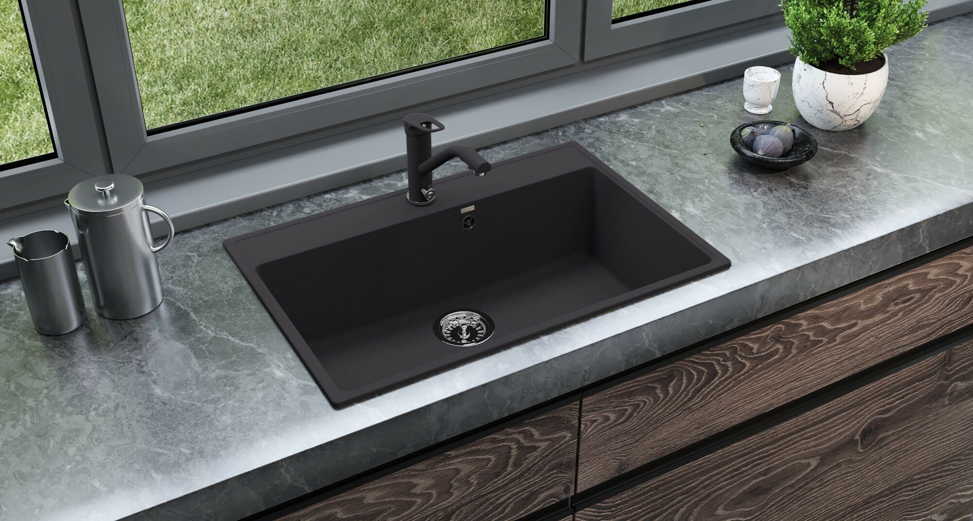 Мойка Ulgran, мрамор, U-400-309, (750*495*200 мм), темно-серый, сифон и сливная арматура