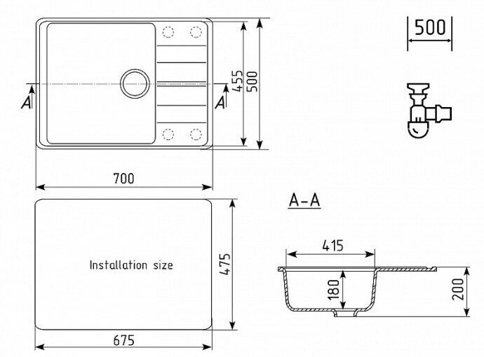 Мойка Ulgran, мрамор, U-400-309, (750*495*200 мм), темно-серый, сифон и сливная арматура