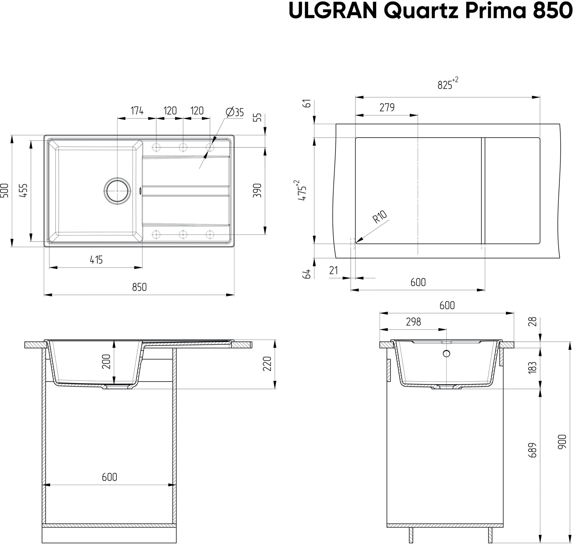Мойка кухонная Ulgran из кварцевого композита прямоугольная Quartz Prima, цвет: уголь, база: 67.5х47.5 см, арт. Prima 700-07 12 581 ₽ Подробнее