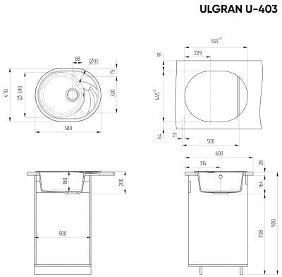 Мойка Ulgran Classic ультра-черный (U-400-344)