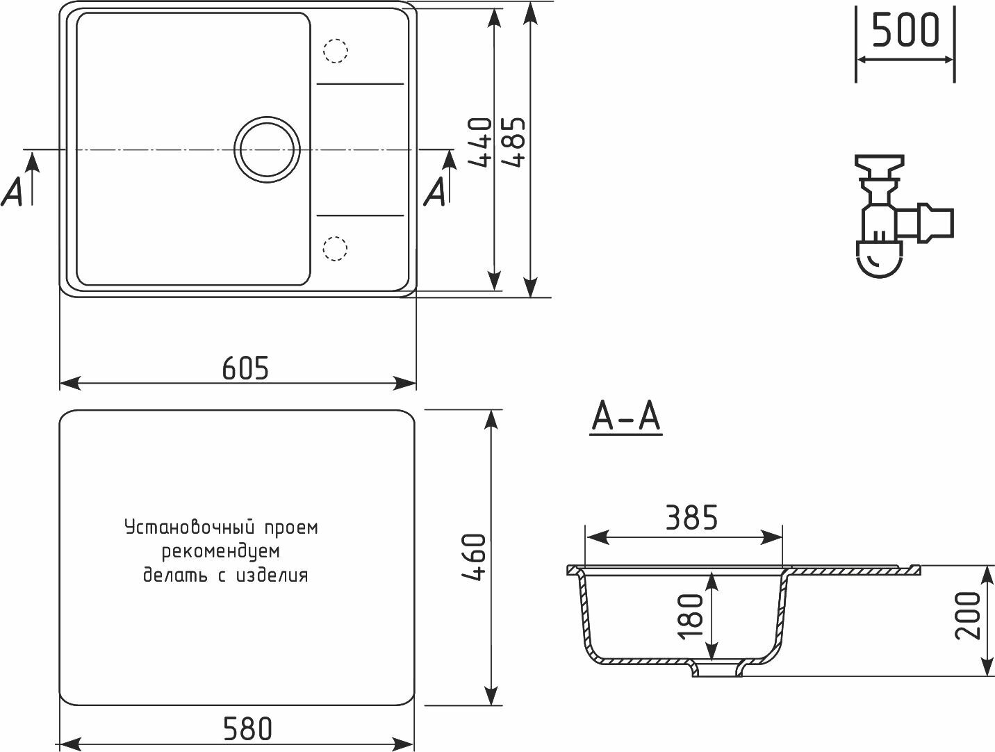 Кухонная мойка Ulgran U-406, 500*445мм искуственный мрамор, цвет черный/ мойка для кухни 50 000 ₽ Подробнее