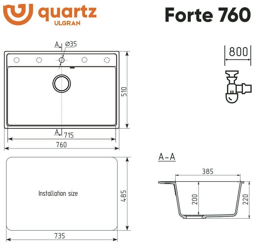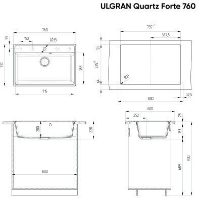 Мойка для кухни Ulgran Quartz 75 см Forte 760-01 14 605 ₽ Подробнее