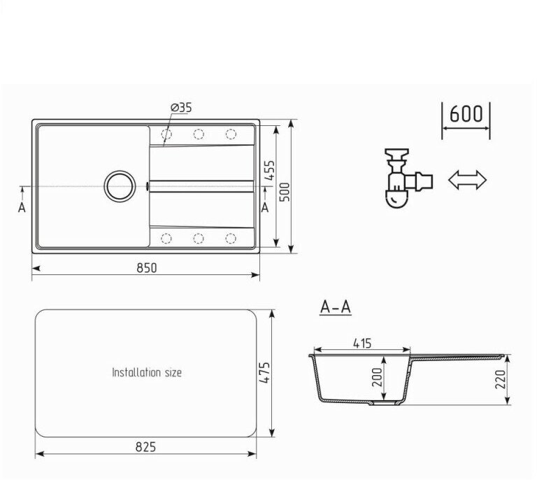 | Тип монтажа | под столешницу |