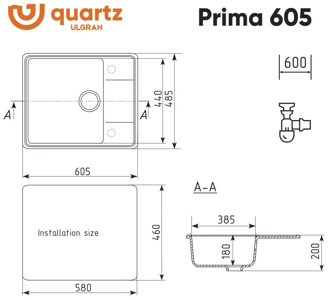 Мойка ULGRAN Quartz Prima 605-03, десерт