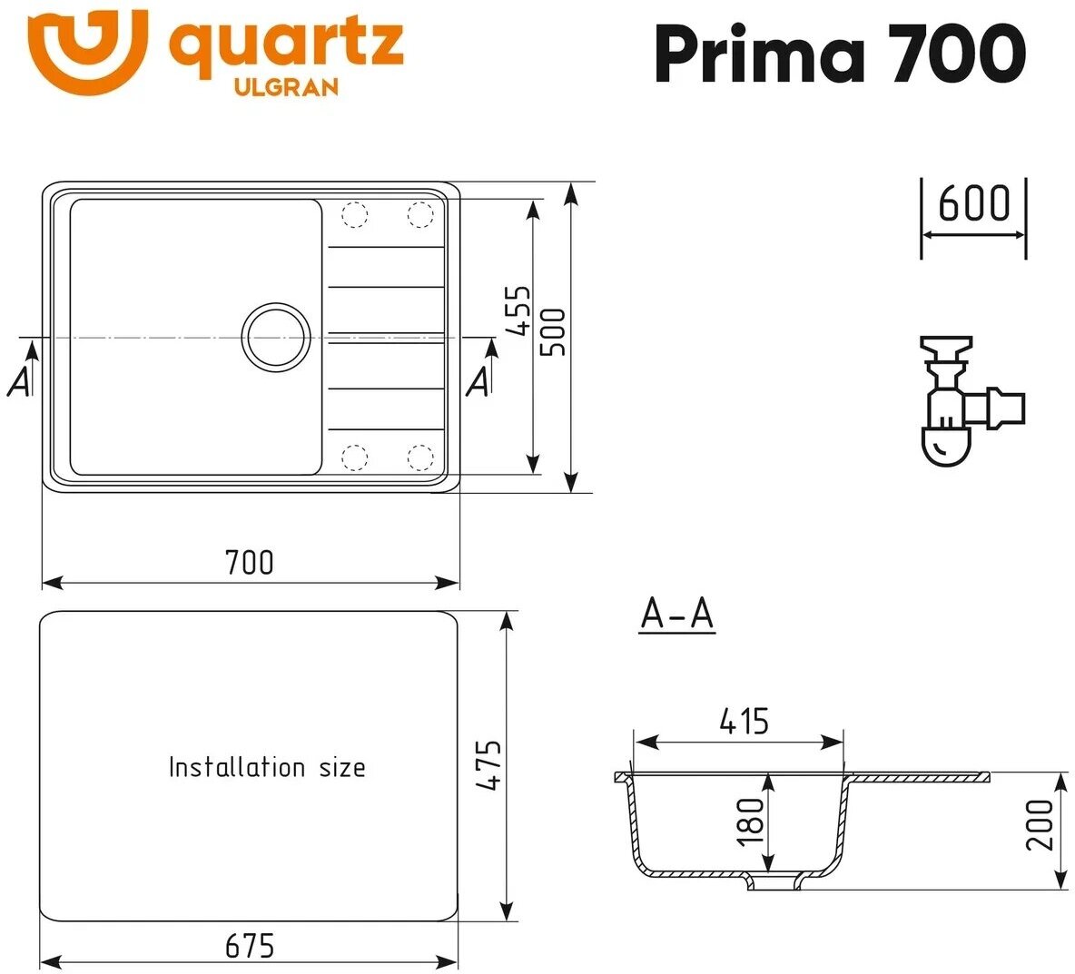 Мойка ULGRAN Quartz Prima 650-06, трюфель