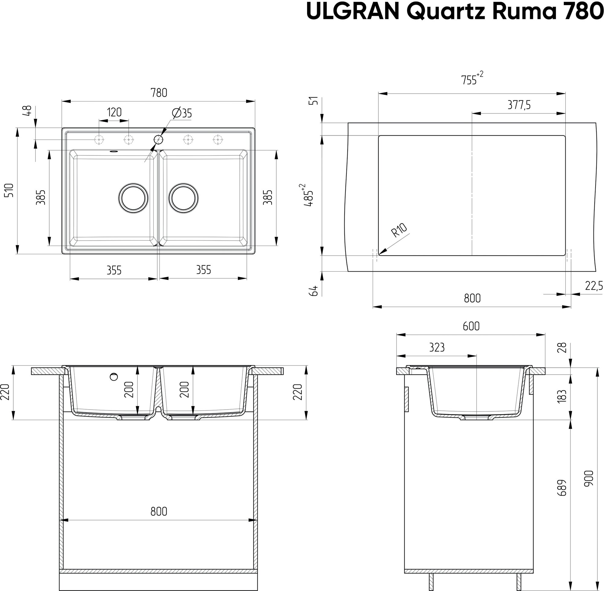Кухонная мойка Ulgran Quartz Ruma 780-07 уголь
