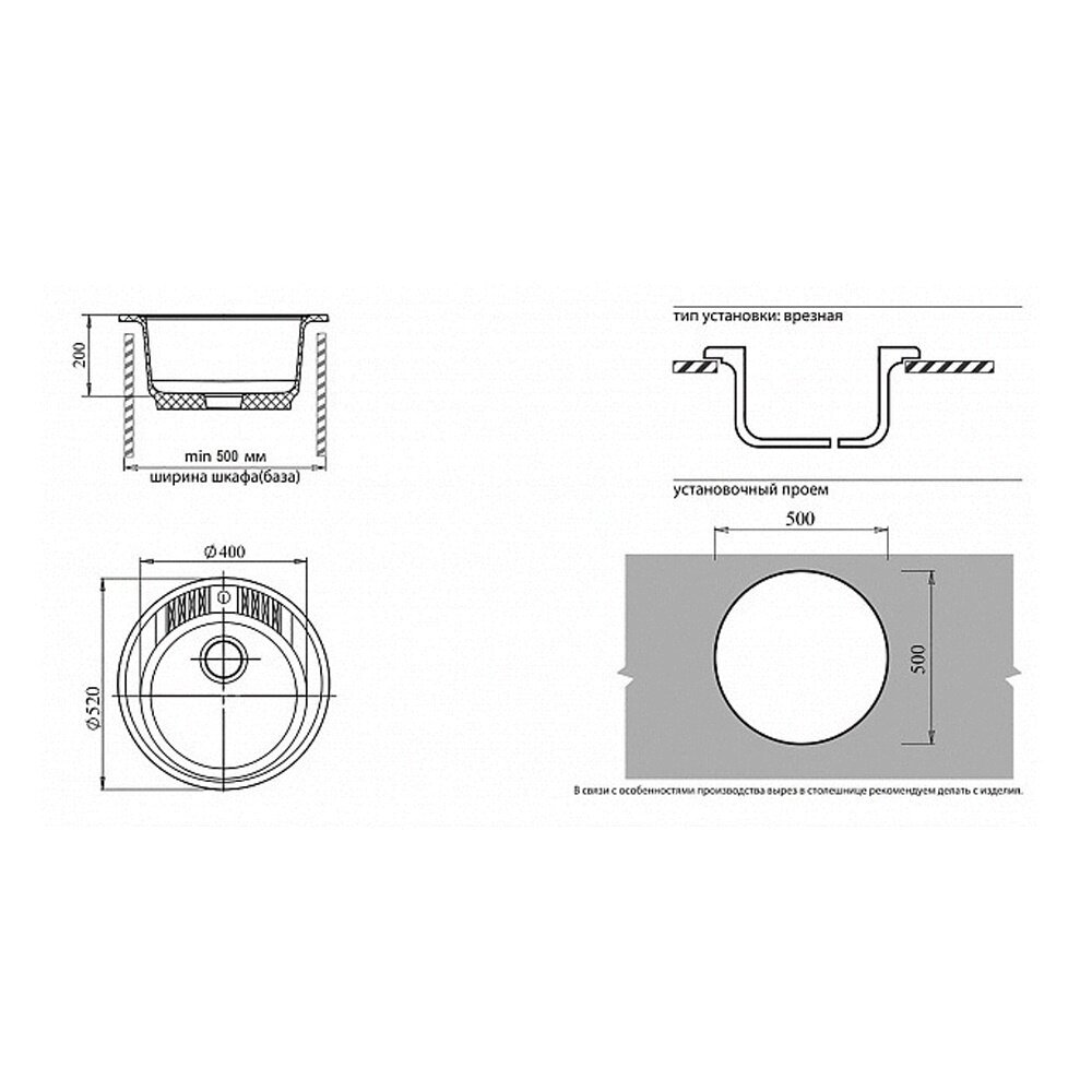 Мойка GRANFEST GF-R520 D =520 мм, круглая (топаз)