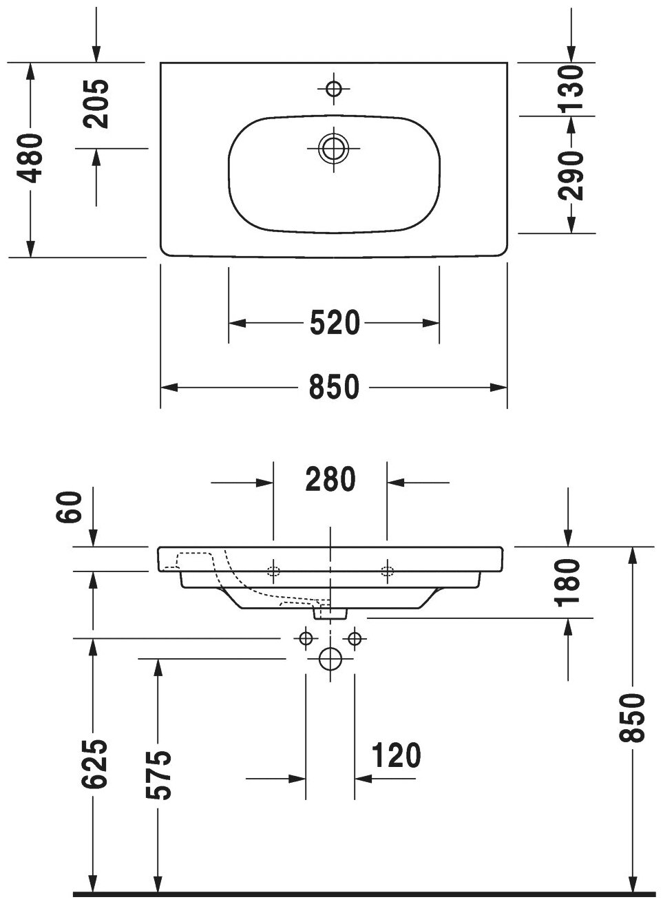 Раковина полувстраиваемая Duravit D-code 85 см 03428500002