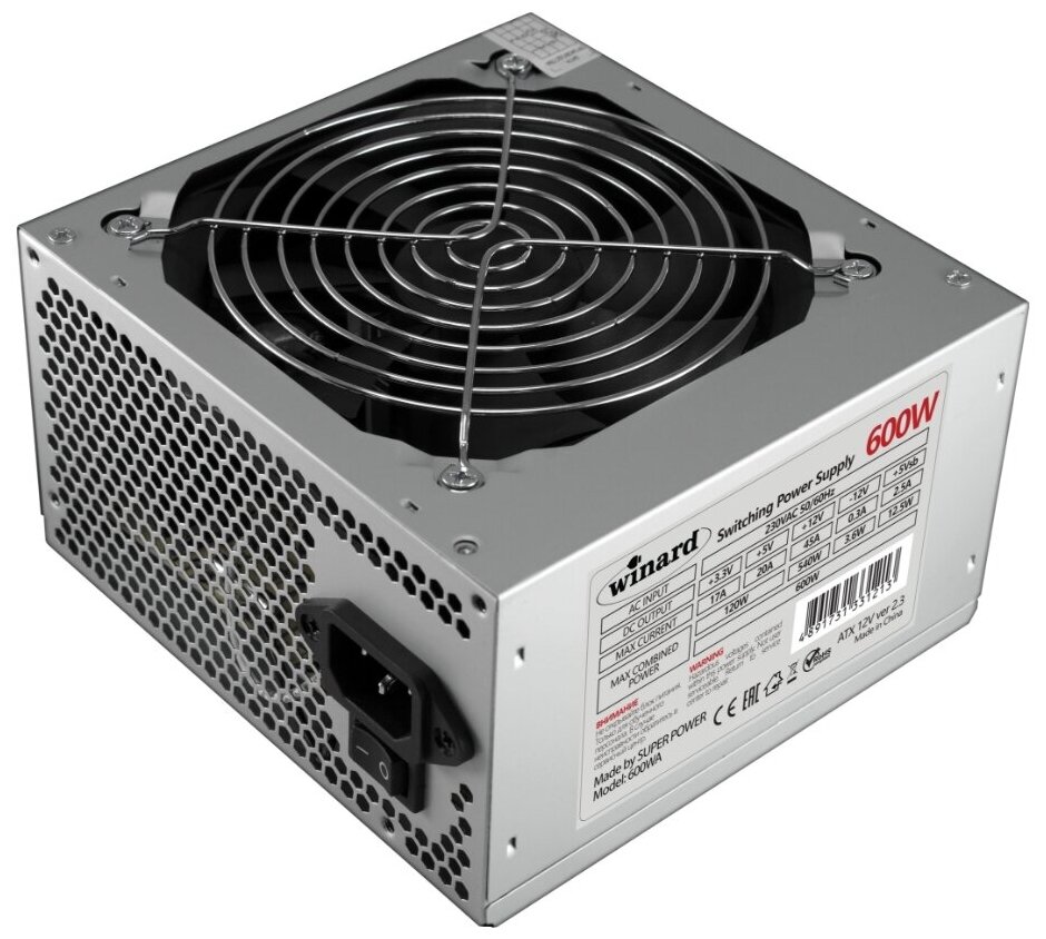 Блок питания Winard 600W (600WA) черный - 600 Вт, EPS12V, 20 + 4 pin, 4 pin CPU, 3 SATA, 6 pin PCI-E