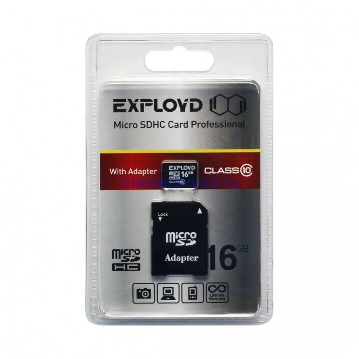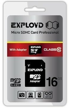EXPLOYD Карта памяти EXPLOYD microSDHC 16GB Class10 + адаптер SD 360 ₽ Подробнее