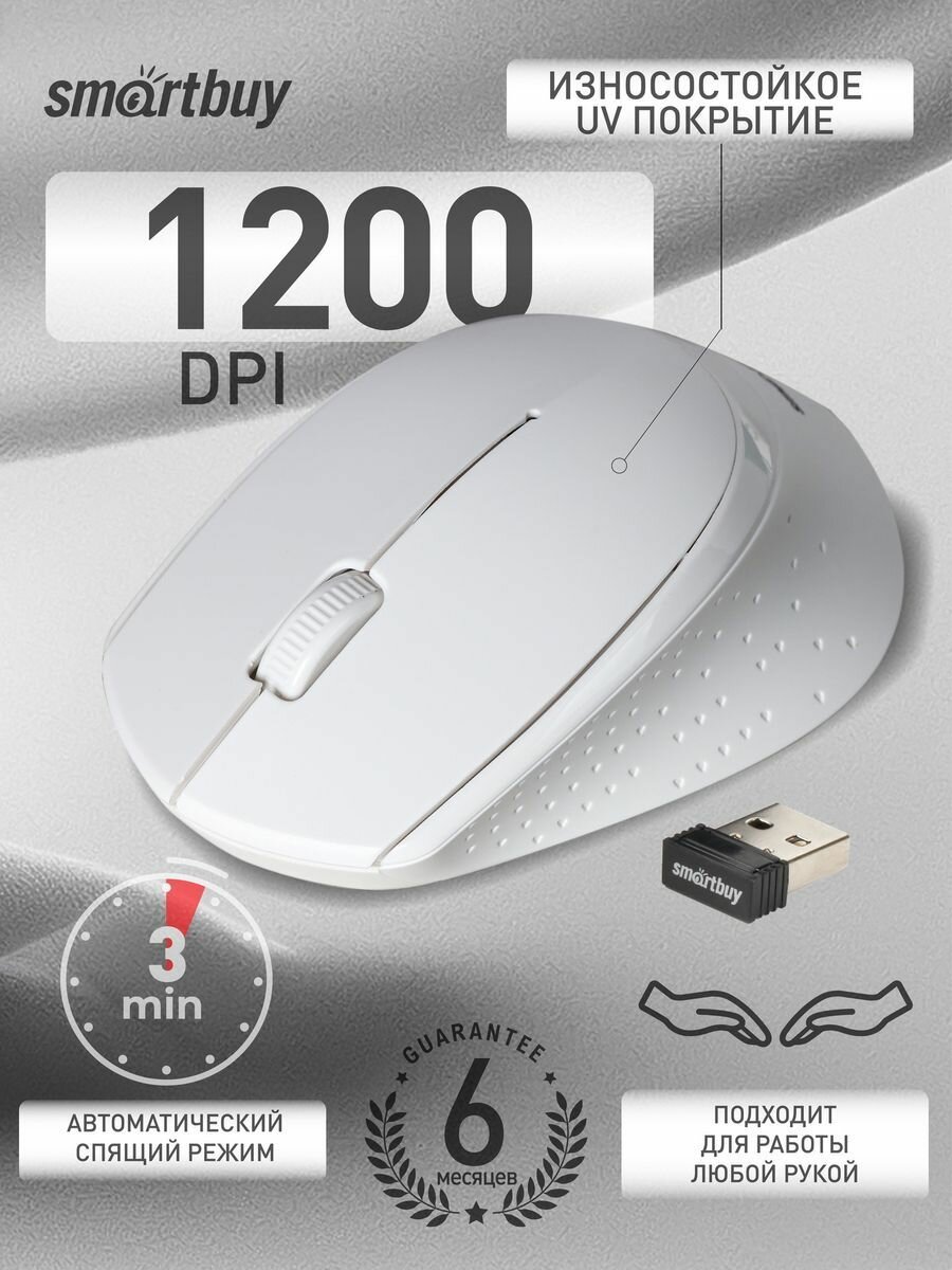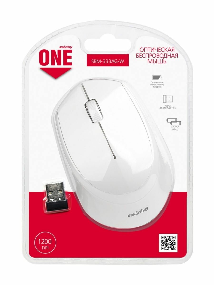 Мышь компьютерная Smartbuy ONE 333AG-W WLS белая (SBM-333AG-W)/80