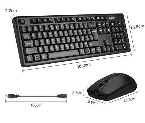 Клавиатура и мышь A4Tech Беспроводные, черные, USB (3330N)