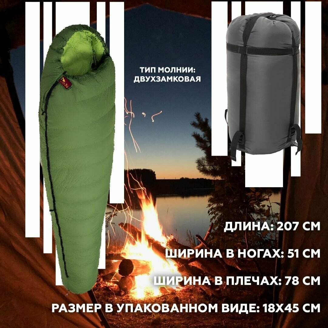 | Оснащение | застежка в ногах / защита от закусывания молнии / компрессионный мешок |