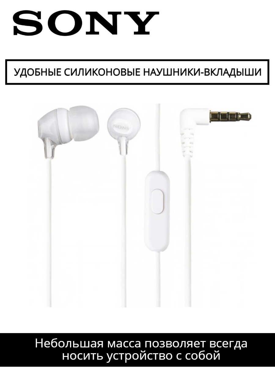 SONY Проводные наушники MDR-EX15AP с микрофоном и кнопкой для ответа, mini jack 3.5 mm , белый / white