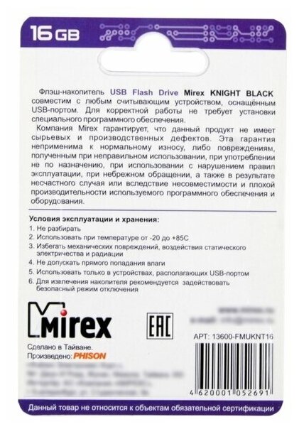 Флешка 16GB Mirex Knight, USB 2.0, Черный 390 ₽ Подробнее