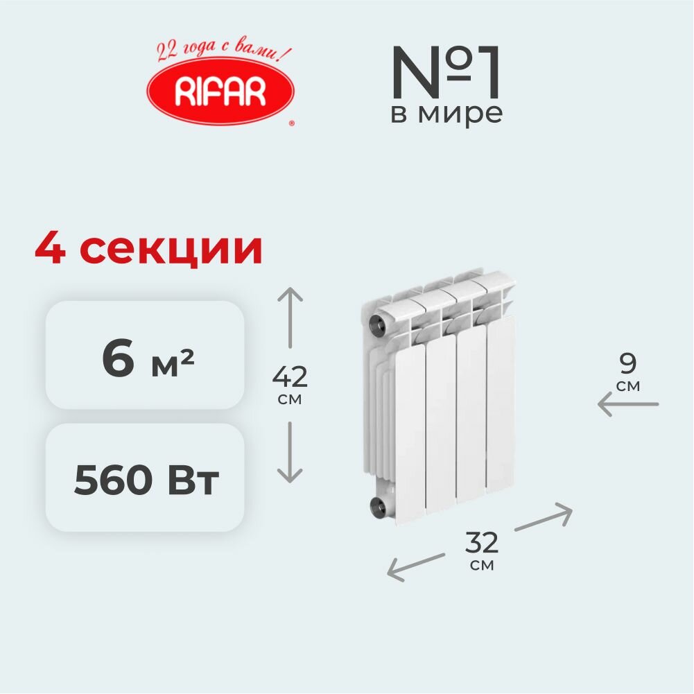 Радиатор секционный Rifar Base 500, кол-во секций: 4, 7.88 м2, 788 Вт, 320 мм.биметаллический