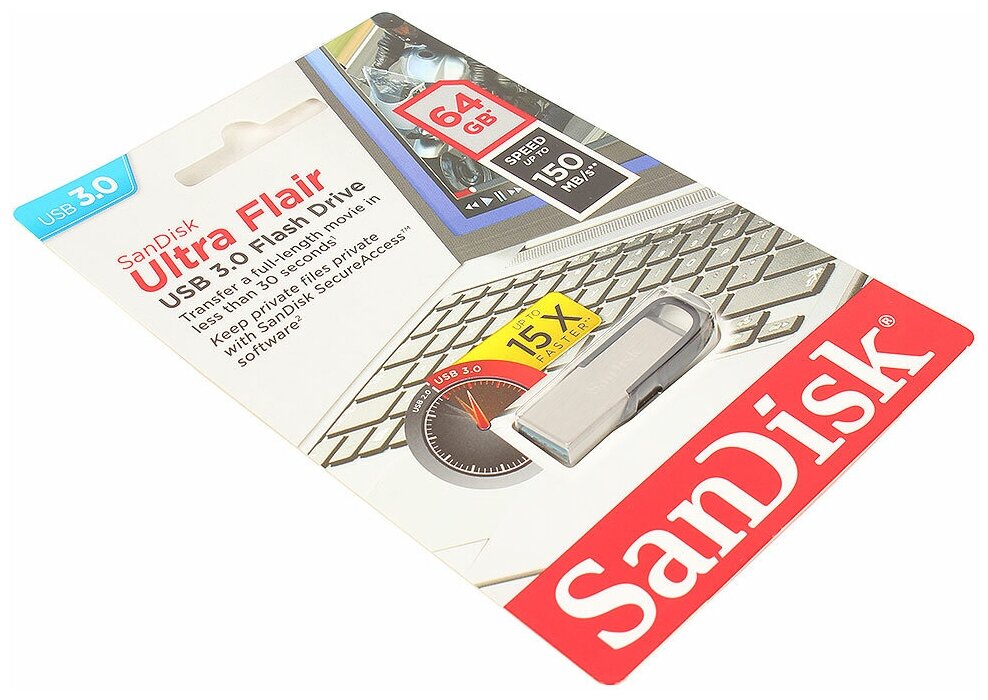 USB накопитель SanDisk Ultra Flair 64GB, USB 3.0, 150MB/s 64GB