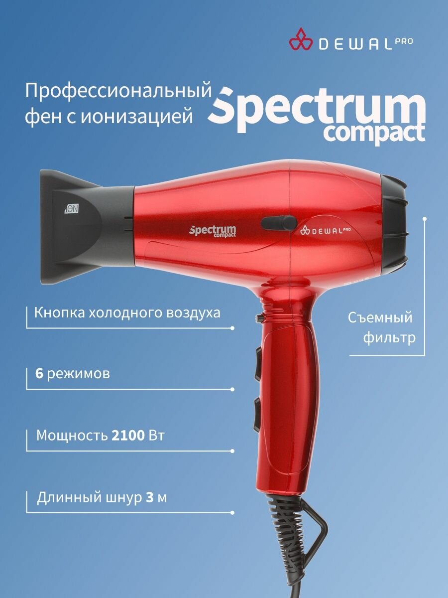 Профессиональный фен для волос Spectrum Compact 03-109 Red, красный, 2100 Вт. Dewal 5 870 ₽ Подробнее