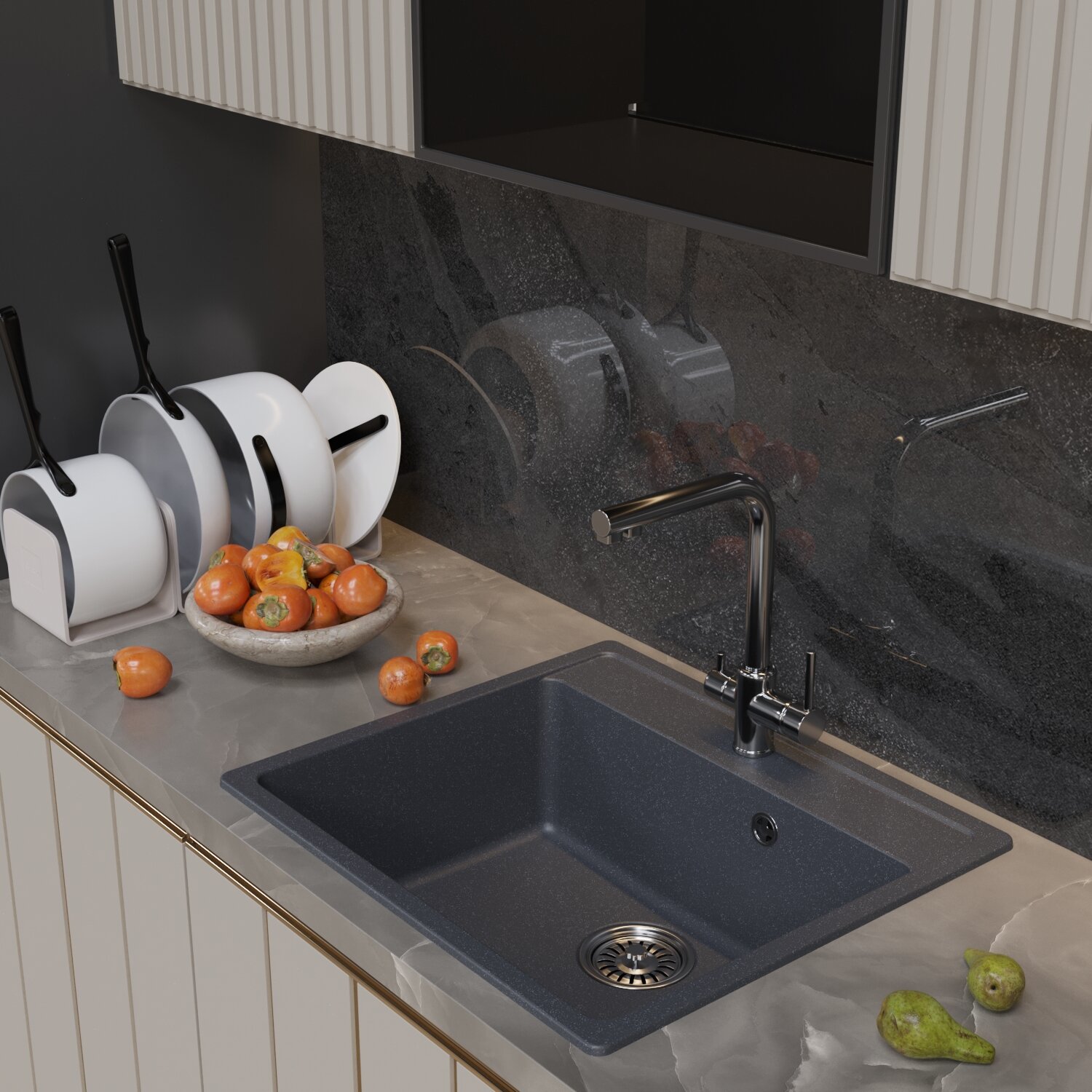 Мойка для кухни из искусственного мрамора, прямоугольная, с сифоном MIXLINE ML-GM 15, темно серая