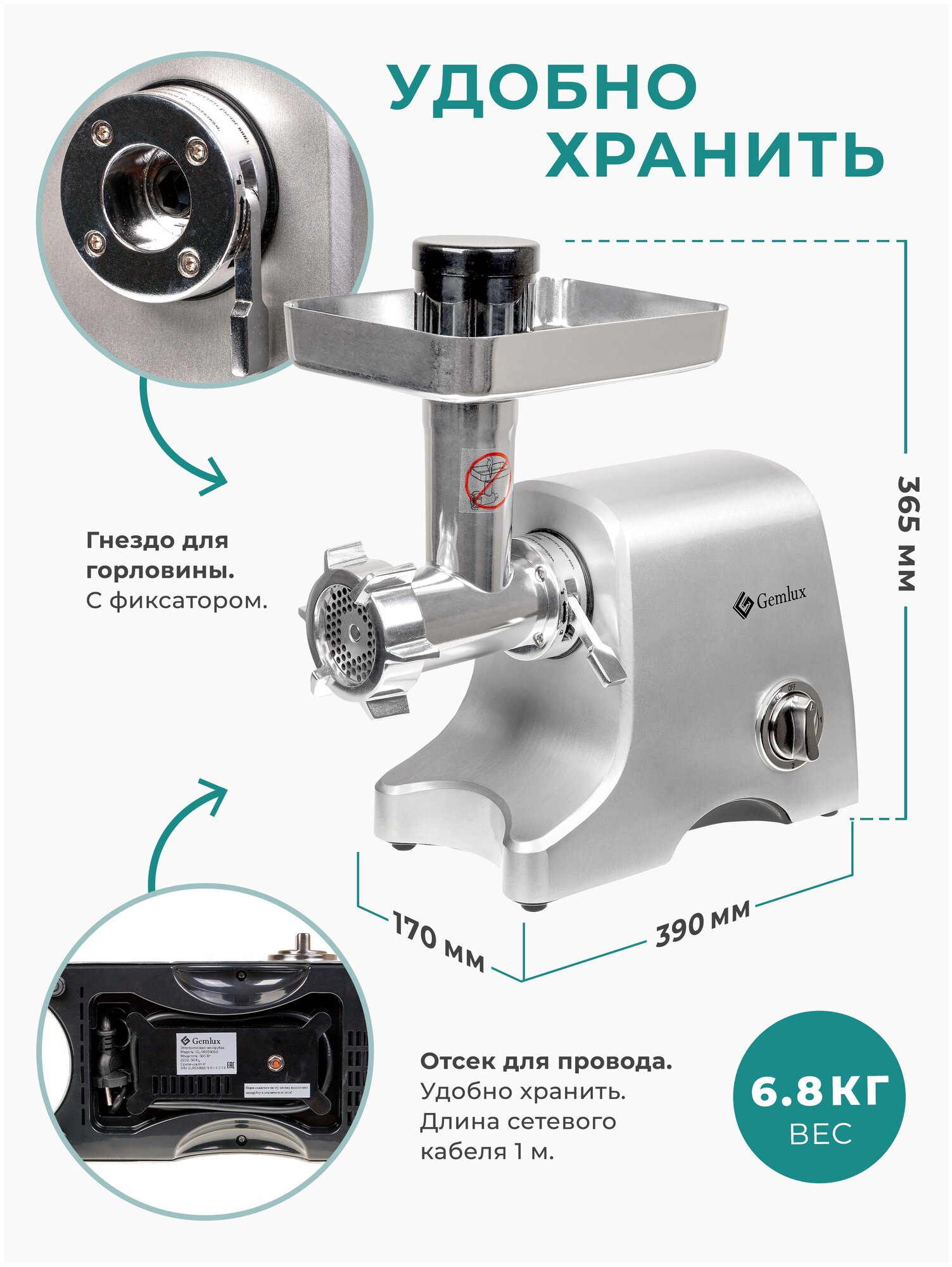 Мясорубки Мясорубка электрическая с насадками для колбасы Gemlux GL-MG500SS