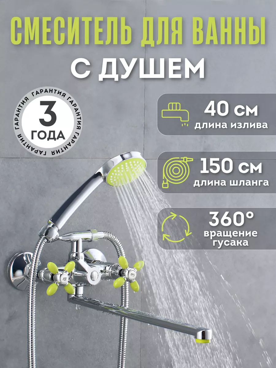 Смеситель для ванны с душем с длинным изливом, кран в ванну Potato