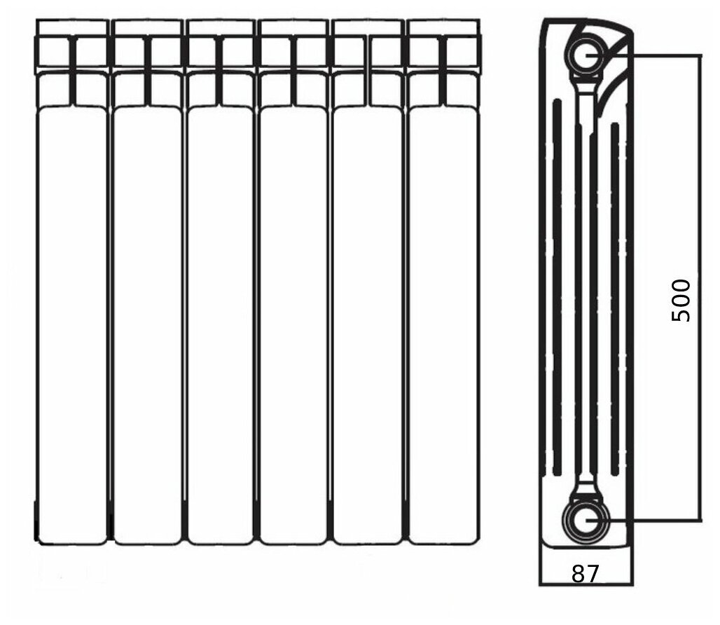 Радиатор секционный биметаллический Royal Thermo BiLiner 500 Bianco Traffico - 6 секц.