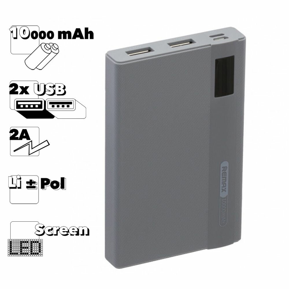 Powerbank Универсальный внешний аккумулятор REMAX Linon Pro Series RPP-53 10000 mAh серый