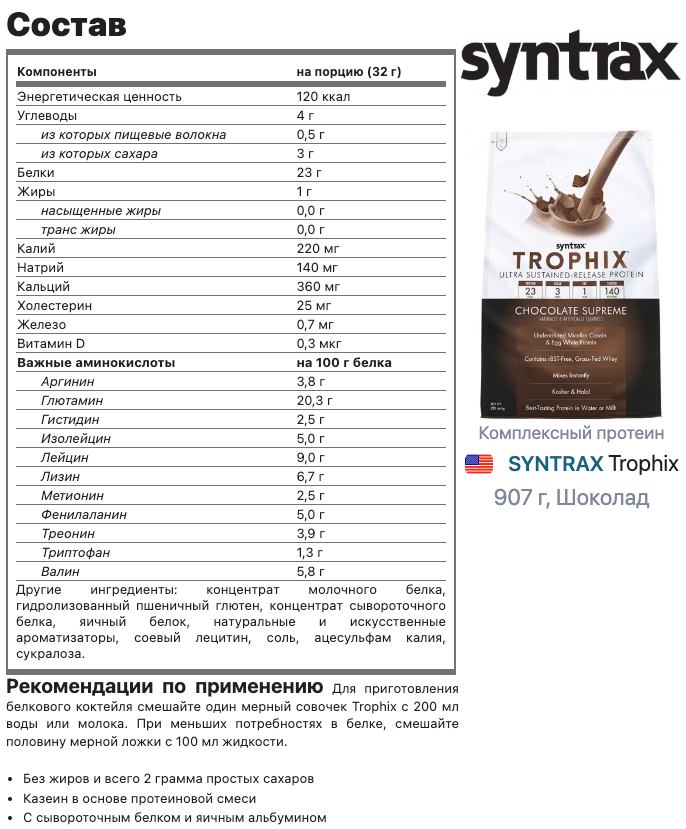 Комплексный протеин SYNTRAX Trophix 907 г, Ванильный крем 3 000 ₽ Подробнее