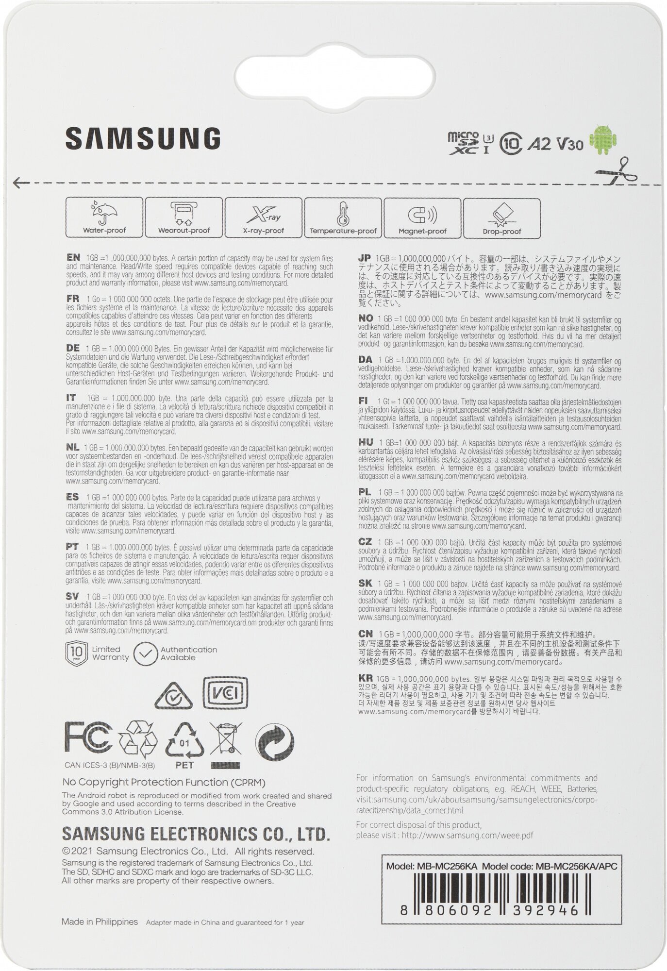 Карта памяти microSD 256ГБ Samsung Class 10 Evo Plus V30 UHS-I U3