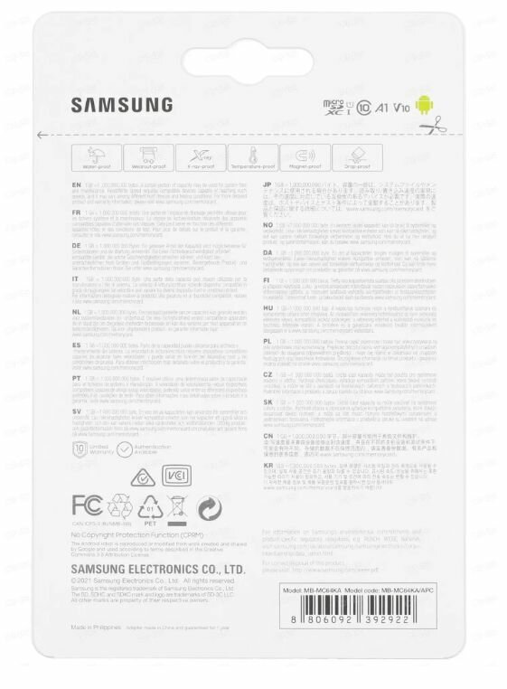 Карта памяти Samsung microSDXC 64 ГБ Class 10, V10, A1, UHS Class 1, R 130 МБ/с