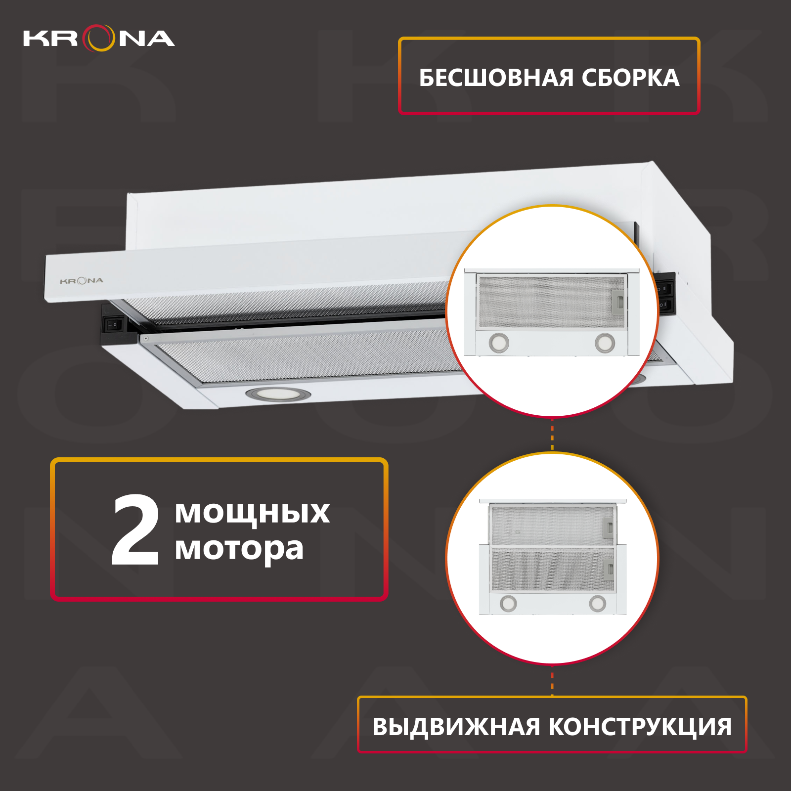 Вытяжка встраиваемая Krona Kamilla 600 slim (2 мотора) white