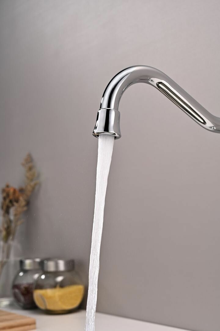 Смесители Смеситель для кухни с подключением к фильтру питьевой воды Paulmark RETRO, высокий поворотный излив ретро дизайна из латуни, двурычажный, для мойки / столешницы, хром, Re213226-CR